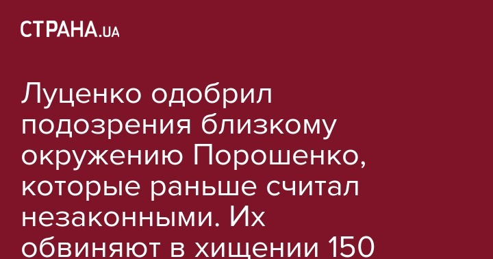 Луценко одобрил подозрения близкому окружению Порошенко, которые раньше считал незаконными. Их обвиняют в хищении 150 млн
