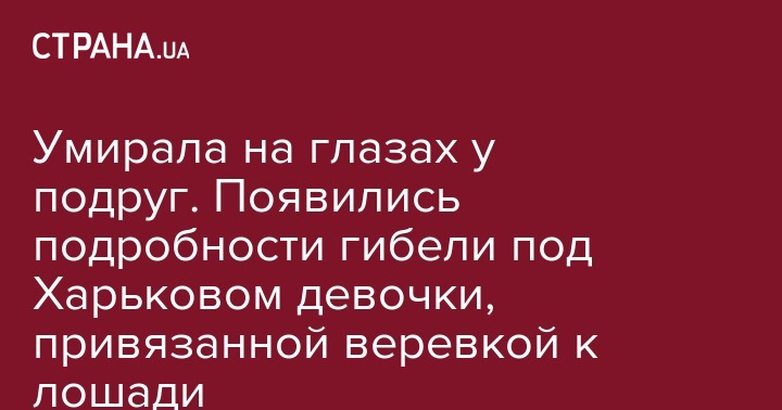 Девушка-подросток, которая погибла из-за испуганной лошади в селе Безлюдовка под Харьковом, умерла на глазах у своих подруг. Об этом пишет издание Город Х.