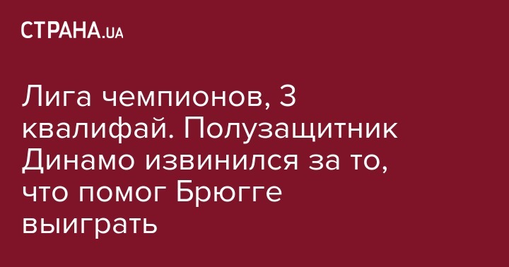 Лига чемпионов, 3 квалифай. Полузащитник Динамо извинился за то, что помог Брюгге выиграть