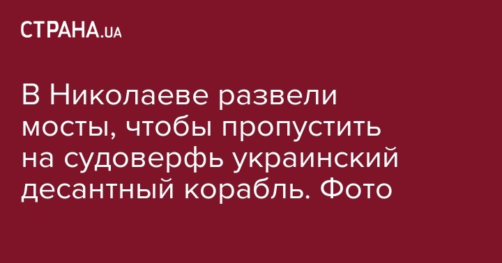 Три моста развели в Николаеве для того, чтобы средний десантный корабль ВМС Украины "Юрий Олефиренко" зашел на ГП "Николаевский судостроительный завод" для выполнения ремонтных работ. Об этом сообщает Укринформ.