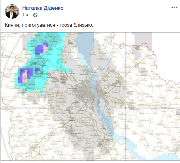 "Киевляне, приготовтесь - гроза близко", - написала синоптик и опубликовала карту, на которой видно наступление стихии.