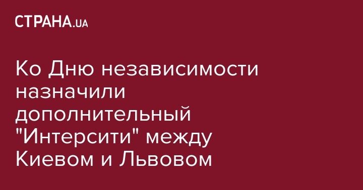 "Укрзализныця" назначила дополнительный скоростной поезд №755/756 Киев - Львов - Киев ко Дню независимости. Об этом сообщается на официальном сайте ведомства.