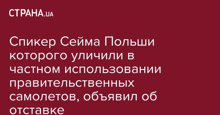 В Польше спикер Сейма и один из ведущих членов партии власти "Право и справедливость" Марек Кухциньский использовал правительственный самолет в частных целях и теперь объявил об отставке. Об этом сообщает RMF 24.