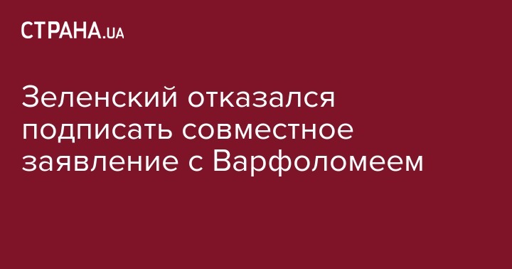 Зеленский отказался подписать совместное заявление с Варфоломеем