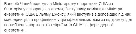 Украинский посол поблагодарил Министерство энергетики США за многолетнее сотрудничество, в частности, заместителя помощника министра энергетики США Уильяма Джойса, который выступил с докладом на конференции, и профильные в этой сфере ведомства за поддержку идеи углубления партнерства Украины и США в сфере ядерной энергетики.