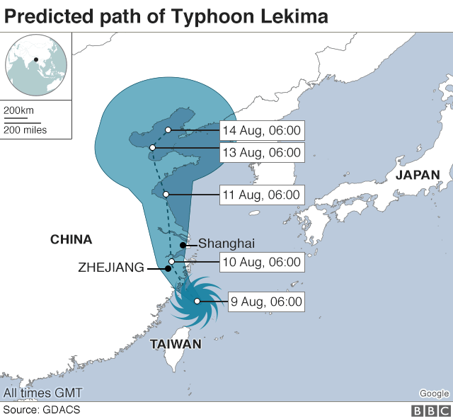 В Китае из-за мощного тайфуна Лекима, который пронесся по стране, погибло уже минимум 13 человек и еще 16 считаются пропавшими без вести. Об этом передает ВВС.
