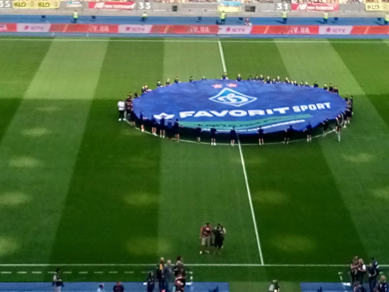 17:03 Игроки расположились на поле. Динамовцы начнут слева, "горняки" - справа