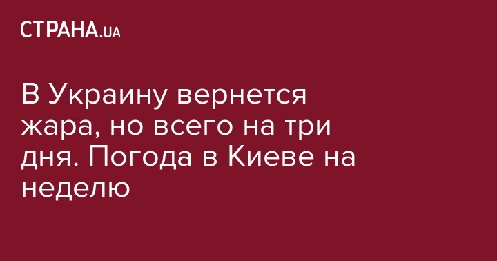 Сайт Sinoptik.ua также пишет, что начало недели в Киеве будет жарким. В понедельник +28 днем, а в среду воздух разогреется до +33. В четверг обещают дождь и снижение температуры до +21. Далее переменная облачность без осадкой, но такой жары уже не будет: +23...+24.