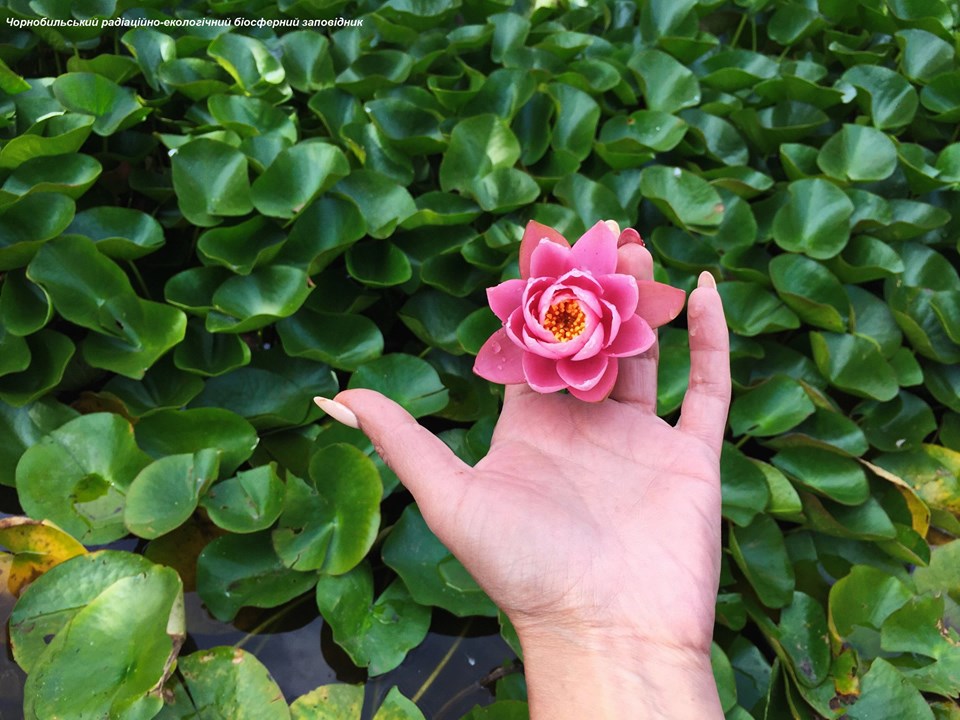 В сети появилось фото розовых кувшинок, которые  украшают водоем в Чернобыльской зоне отчуждения. Снимки опубликованы на странице Чернобыльского радиационно-экологического биосферного заповедника в соцсети.