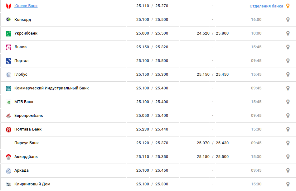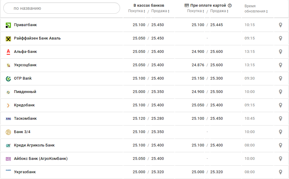 В обменках по состоянию на 09:00 средняя покупка - 25,26 грн, средняя продажа - 25,33 грн. В 12:00 на наличном рынке валют доллар: 25,23 покупка и 25,30 продажа. К вечеру доллар незначительно подешевел в покупке по сравнению с утром: 25,25 грн. и "просел" в продаже - 25,30 грн.
