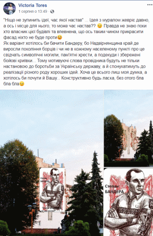 В городе Надворная Ивано-Франковской области, на здании Архитектурно-планировочного бюро вместо панно советского периода может появиться мурал со Степаном Бандерой с тату трезубца, часами и в тенниске Fred Perry.