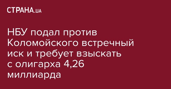 НБУ подал против Коломойского встречный иск и требует взыскать с олигарха 4,26 миллиарда