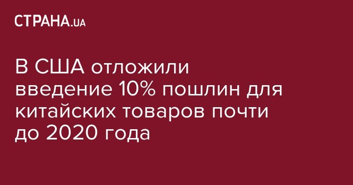 Власти США решили отложить введение 10%-ной пошлины на определённые китайские товары до 15 декабря 2019. Об этом говорится в пресс-релизе Торгового представительства США, передает Интерфакс-Украина.