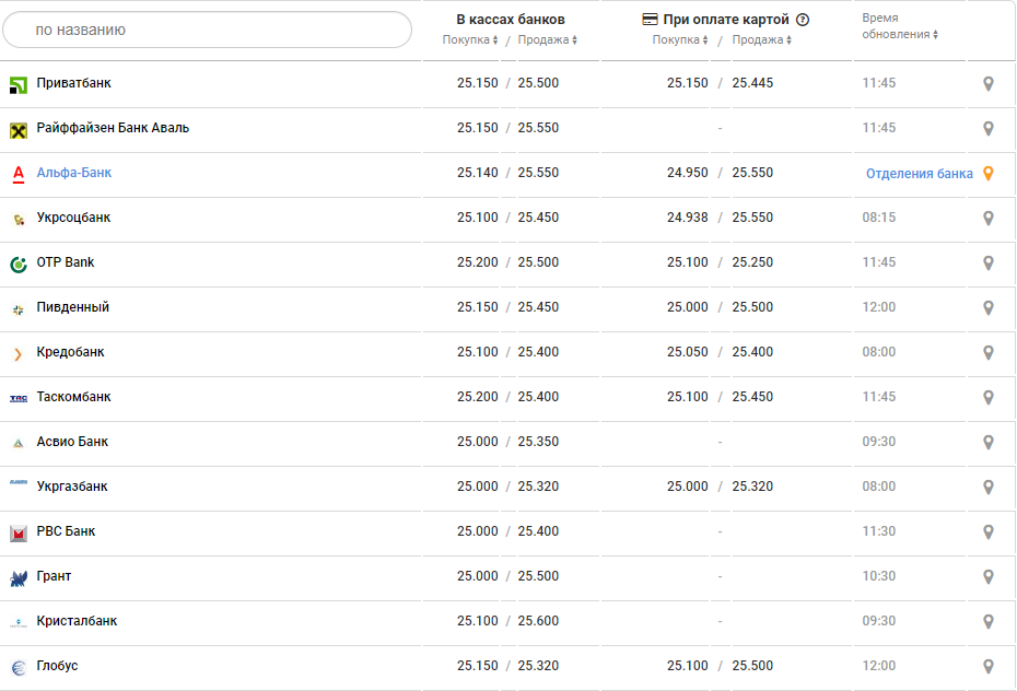 В банках курс доллара сегодня был такой: средняя покупка 25,1 грн, средняя продажа - 25,4 грн.