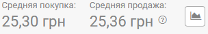 В обменках по состоянию на 08:30 средняя покупка была 25,25 грн, средняя продажа - 25,32 грн.