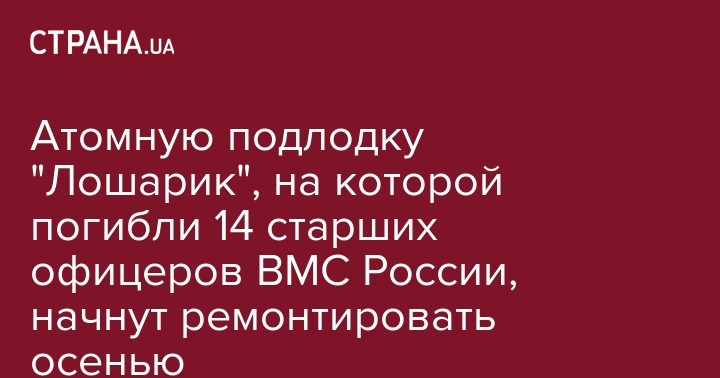 Атомную подлодку "Лошарик", на которой погибли 14 старших офицеров ВМС России, начнут ремонтировать осенью