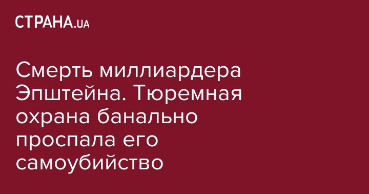 Сотрудники тюрьмы в Манхэттене примерно в течение трех часов не проверяли камеру Эпштейна, хотя должны были делать это каждые 30 минут. Вместо этого они подделывали соответствующие записи, а сами спали. 3 августа он совершил самоубийство, а обнаружили это, по данным журналистов, спустя 2 часа после инцидента.