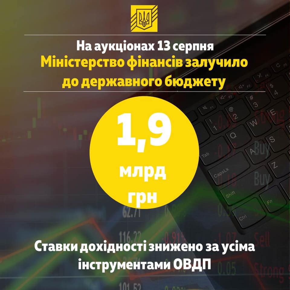 В результате аукционов ОВГЗ 13 ​​августа ставки доходности по всем инструментам снижены и составили: