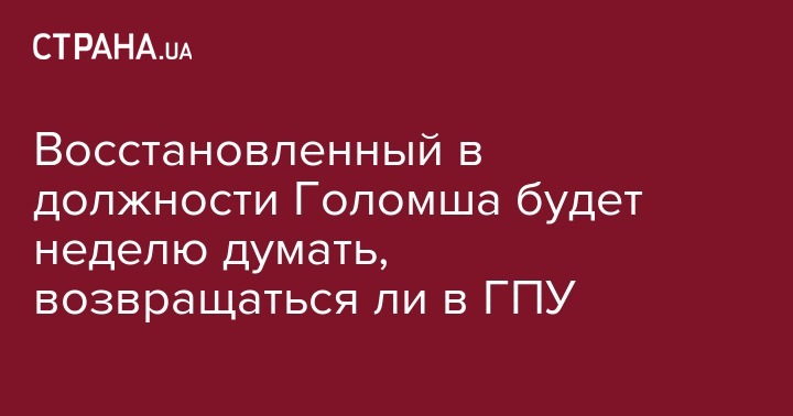 Восстановленный в должности Голомша будет неделю думать, возвращаться ли в ГПУ