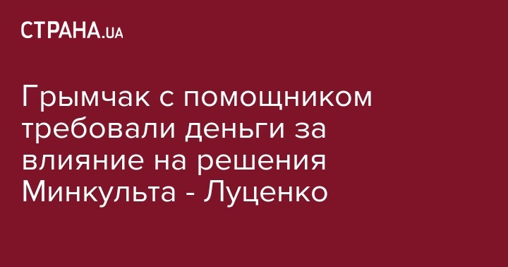 "Грымчак и его помощники требовали средства за влияние на решения судей и чиновников Минкультуры для принятия заказных решений", - написал генпрокурор в Facebook.