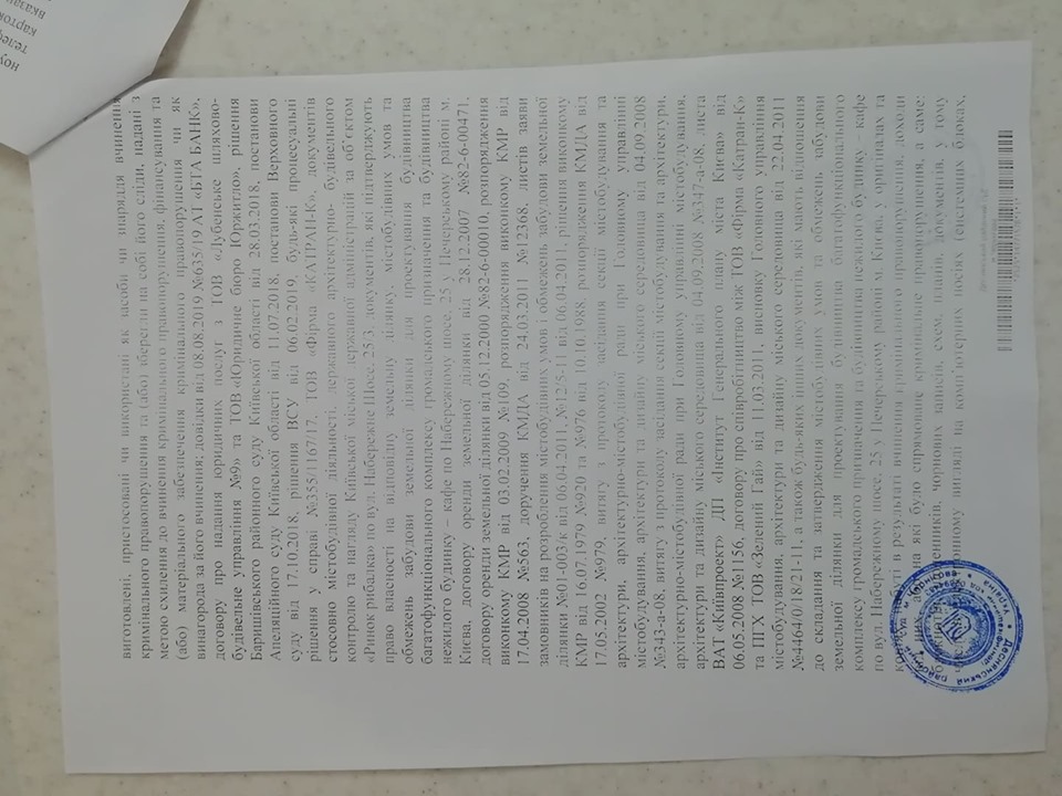 Помимо этого эпизода, в одном из разговоров с Грымчаком представитель ООО рассказал ему о прохождении обществом сложной процедуры согласования разрешительных документов на осуществление строительных работ на земельных участках в Киеве, которые в соответствии с законом "Об охране культурного наследия" относятся к памятникам культурного наследия. В ответ замминистра предложил свои "услуги" по обеспечению согласования проектной документации за денежное вознаграждение в $1 млн.