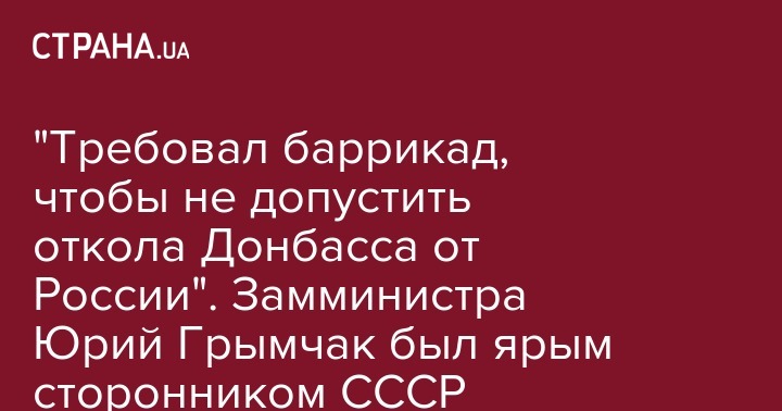 По словам политолога, 24 августа, когда Украина объявила независимость, Грымчак поймал Петра Симоненко, тогда секретаря Донецкого обкома партии, который при независимости станет руководителем украинских коммунистов, в коридоре Донецкого обкома партии, "впечатал того в стенку и потребовал сопротивления "до последней капли крови". "Требовал возведения баррикад на улицах с тем, чтобы не допустить откола Донбасса от России. То есть такого борца "за сохранение Союза" еще поискать надо было", - вспоминает Корнилов.
