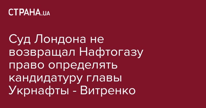 Лондонский международный арбитражный суд не возвращал НАК "Нафтогаз Украины" право определять кандидатуру главы "Укрнафты". Об этом заявил исполнительный директор "Нафтогаза" Юрий Витренко в интервью для Экономической правды.