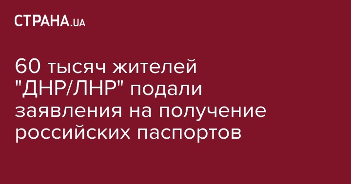 Министерство внутренних дел России приняло более 60 тысяч заявлений на получение гражданства от жителей так называемых "Донецкой" и "Луганской народных республик". Об этом сообщают "Известия" со ссылкой на руководителя Главного управления по вопросам миграции МВД Валентину Казакову.