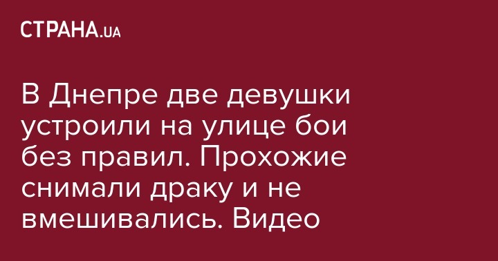 В Днепре две девушки устроили на улице бои без правил. Прохожие снимали драку и не вмешивались. Видео