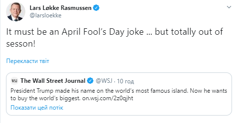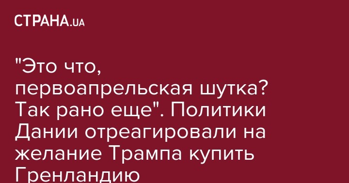 Датские политики расценили сообщение об интересе президента США Дональда Трампа к покупке Гренландии, которая является автономией в составе королевства, как неправдоподобную шутку. Соответствующую позицию экс-члены правительства Дании изложили в пятницу, 16 августа, на своих страницах в Twitter.