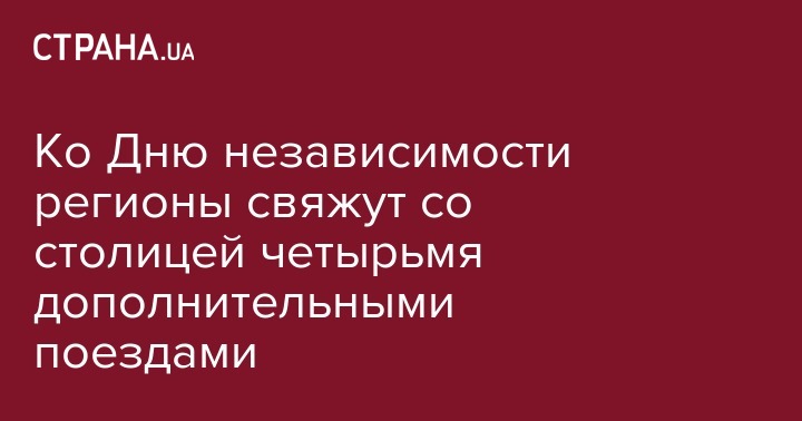 На выходные ко Дню независимости Украины "Укрзализныця" назначила 4 дополнительных поезда. Об этом сообщается на сайте "Укрзализныци".