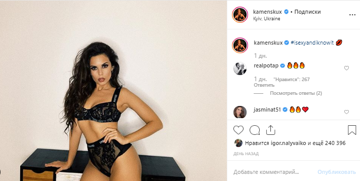 Фанаты оставляют восторженные отзывы, называя такие фото певицы - настоящим произведением искусства: "Ты не ты, когда выглядишь лучше всех! Однозначно топ-модель с глянца", "Как всегда огонь", "Настя, ты бесспорно самая офигенная", "Самая шикарная", "Огненно", "Настя всегда просто шик", "Похожа на Ким", "А Потап не ревнует...". В комментариях видно, что супруг Каменских Потап не только не против оголения супруги, но и всячески поддерживает ее.