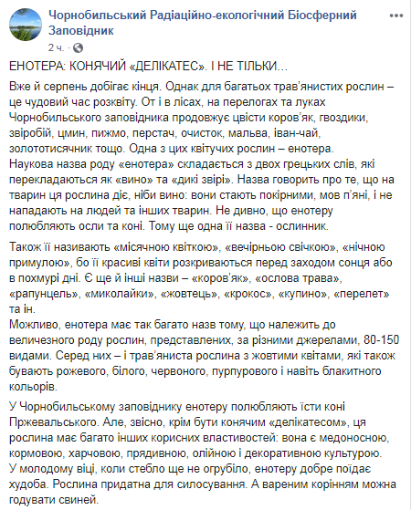 Скриншот, фото: Facebook/ Чорнобильський Радіаційно-екологічний Біосферний Заповідник