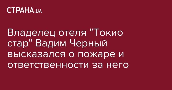 Бизнесмен Вадим Черный, владелец здания, в котором расположен отель "Токио Стар", дал комментарий по поводу пожара в одесской гостинице с восемью жертвами, случившегося в ночь на 17 августа. Об этом сообщает "Радио Свобода".
