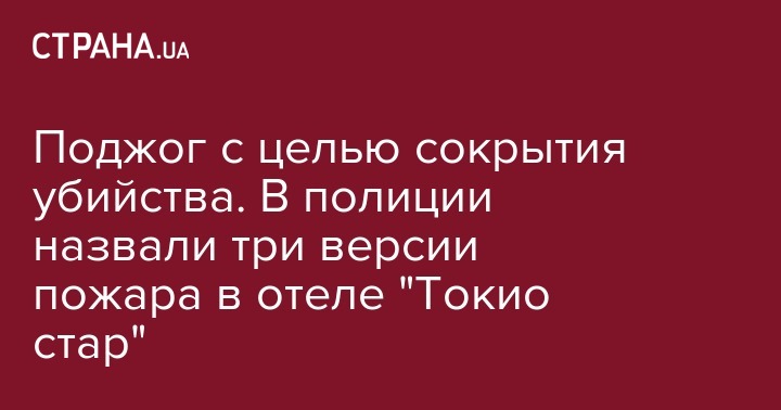 Нацполиция среди основной версии пожара в одесской гостинице "Токио стар" считает совершение поджога с целью сокрытия убийства. Об этом заявил начальник Главного управления Национальной полиции в Одесской области Олег Бех, передает "Интерфакс-Украина".