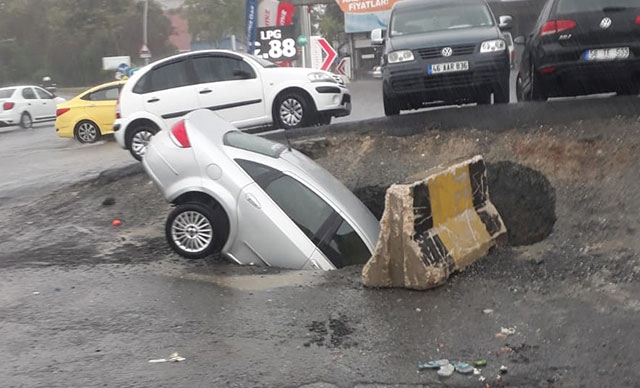 Отмечается также, что частично затоплены несколько ключевых магистралей города и станция метро Атакьой.