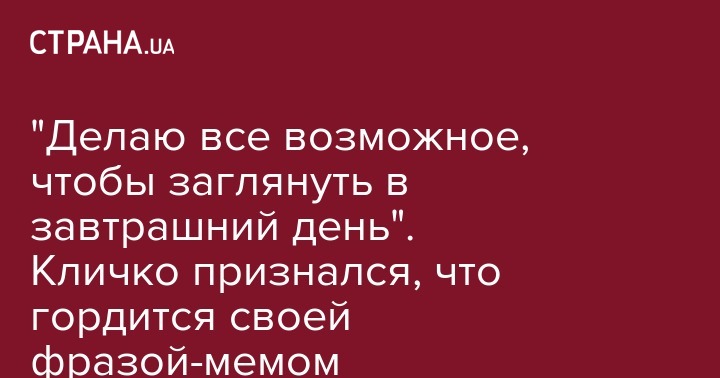 Мэр Киева и экс-чемпион мира по боксу Виталий Кличко рассказал, что ему нравится собственная фраза про "завтрашний день" в эфире программы "Рандеву с Яниной Соколовой".