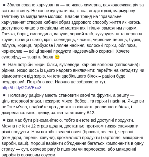 Для того, чтобы питаться правильно, не обязательно тратить много денег и покупать чиа, киноа, ягоды годжи, мраморную телятину и миндальное молоко. Собственно тренд на "правильное питание" создал ложный образ здорового образа жизни как чего-то, доступного только в специальных магазинах и только состоятельным людям. Гречка, борщ, смородина, арбузы, черный хлеб, кукурузная и перловая крупы, горчица и сало, укроп, сельдь, чеснок, красный перец, свекла, яблоки, корица, тыквенные и льняные семена, грецкие орехи, облепиха, чернослив - все эти привычные продукты чрезвычайно полезны. Хотите суперфуд - сварите борщ.