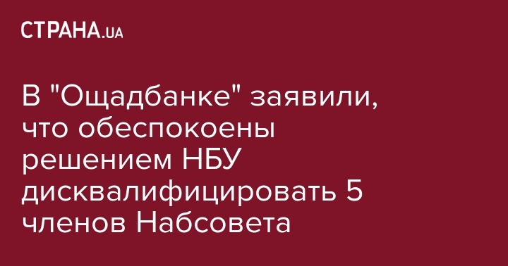 Члены наблюдательного совета "Ощадбанка" выразили обеспокоенность решением НБУ дисквалифицировать пять членов своего наблюдательного совета. Они предполагают, что это связано с недавним решением Набсовета продлить трудовой контракт с председателем правления "Ощадбанка" Андреем Пышным.