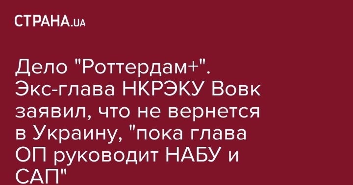 Дело "Роттердам+". Экс-глава НКРЭКУ Вовк заявил, что не вернется в Украину, "пока глава ОП руководит НАБУ и САП"