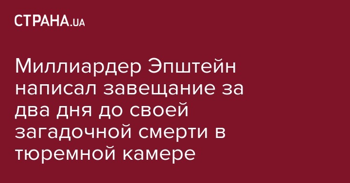 Миллиардер Эпштейн написал завещание за два дня до своей загадочной смерти в тюремной камере