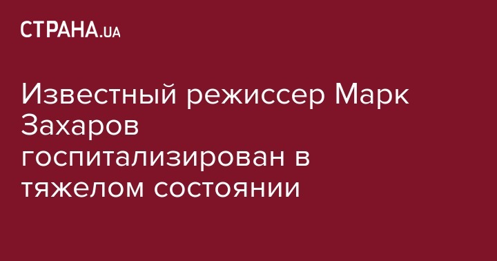 Уточняется, что Захаров попал в реанимацию в тяжелом состоянии. У него диагностировали двустороннее воспаление легких. По данным издания, режиссер чувствовал недомогание в течение последних нескольких дней, однако отказывался обращаться к врачам. Он попросил оказать медицинскую лишь помощь после того, как у него началась тяжелая одышка.