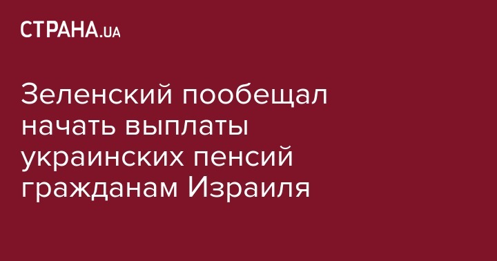 Украинский президента Владимир Зеленский пообещал главе правительства Израиля Беньямину Нетаньяху ратифицировать соглашение о выплате пенсий бывшим украинским пенсионерам, инвалидам и ликвидаторам аварии на Чернобыльской атомной электростанции, которые репатриировались в Израиль после 24 августа 1991 года.