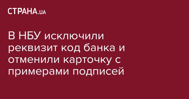 В НБУ исключили реквизит код банка и отменили карточку с примерами подписей