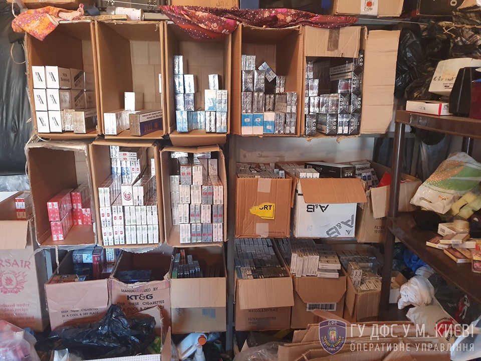 "В ходе досудебного расследования в уголовном производстве по факту незаконного оборота подакцизных товаров был проведен обыск гаражного бокса, расположенном в левобережной части Киева, где хранились сигареты иностранного производства, которые предположительно попали на территорию Украины вне таможенного контроля, а также сигареты отечественного производства без марок акцизного налога".