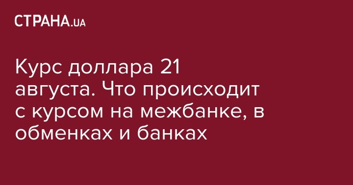 Торги на межбанке, которые влияют на курсы в банках и обменках, открылись в 10:00. 20 августа справочный курс гривны к доллару США на межбанковском валютном рынке укрепился до 25,1242 грн/$1 с 25,1883 грн/$1.