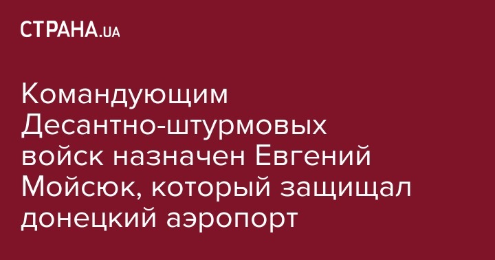 Новым командующим Десантно-штурмовых войск ВСУ вместо прошедшего в парламент по списку партии Порошенко Михаила Забродского стал генерал-майор Евгений Мойсюк. Об этом сообщил министр обороны Степан Полторак в Facebook.
