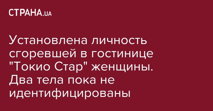 Установлена личность еще одной жертвы пожара в гостинице "Токио Стар". Осталось идентифицировать еще двух – ребенка и мужчины. Об этом в среду, 21 августа, сообщает отдел коммуникации полиции Одесской области.