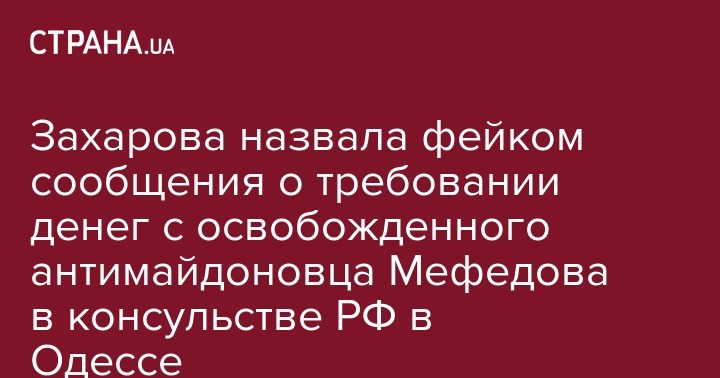Сообщения в интернете о том, что с гражданина РФ Евгения Мефедова, которому инкриминируется посягательство на территориальную целостность и неприкосновенность Украины, и вышедшего из СИЗО под залог, в российском консульстве в Одессе требовали деньги за оформление документов - фейк. Об этом в Фейсбуке сообщила официальный представитель МИД РФ Мария Захарова.