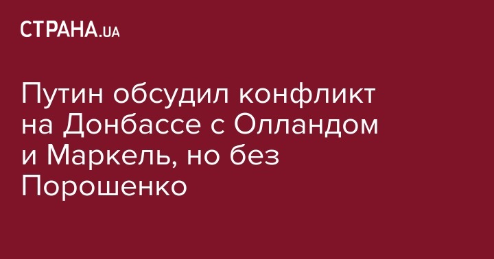 "Состоялся телефонный разговор Владимира Путина с Федеральным канцлером Федеративной Республики Германия Ангелой Меркель и Президентом Французской Республики Франсуа Олландом. Обсуждено развитие внутриукраинского кризиса. Выражена обеспокоенность участившимися в последнее время нарушениями режима прекращения огня на Донбассе. Акцентирована приоритетность задачи недопущения дальнейшей деградации ситуации в зоне конфликта и последовательной реализации в этих целях договорённостей по отводу тяжёлых вооружений и взаимному разведению сил от линии соприкосновения", - говорится в сообщении.